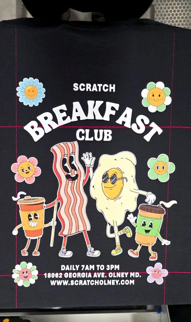 When a restaurant makes everything from scratch, you know they care about the details. That’s exactly the vibe at Scratch Kitchen, a beloved breakfast and brunch destination in Olney, Maryland. Owner Nate reached out to Print Habit to outfit his team with custom printed shirts that capture the fun, welcoming energy his restaurant is known for — and we delivered on both sides.